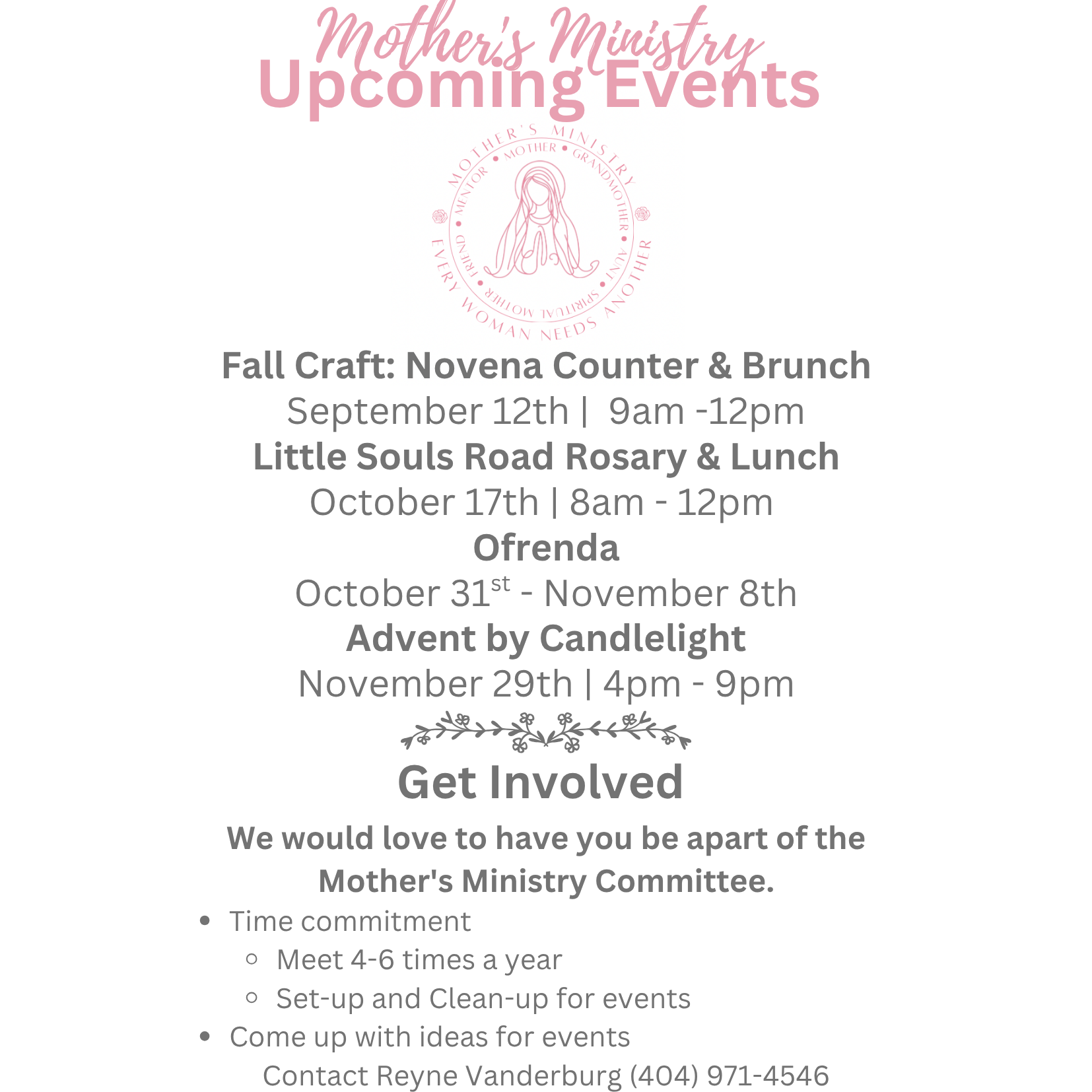 The Mother's Ministry is for every woman in her phase of motherhood. You don't have to have children to participate in our ministry.