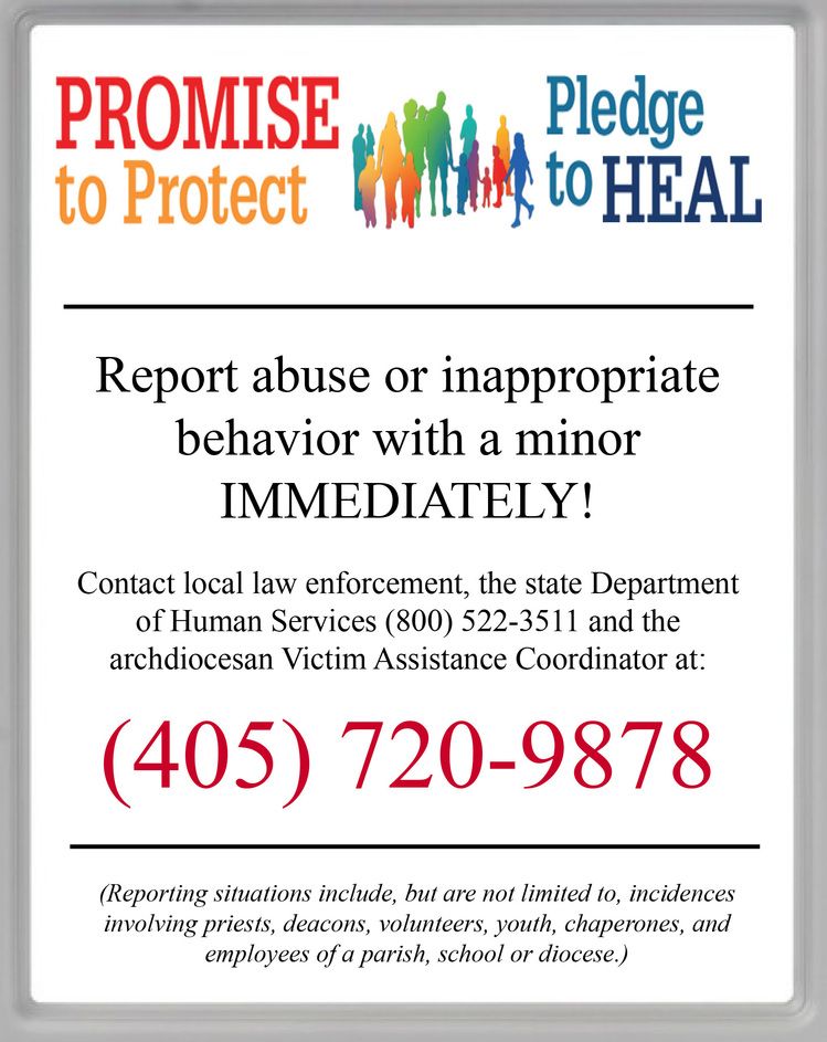 The Archdiocese of Oklahoma City has a comprehensive Safe Environment Program. All teachers, staff members and volunteers at Saint John Nepomuk Catholic School complete the following requirements prior to working with your children.