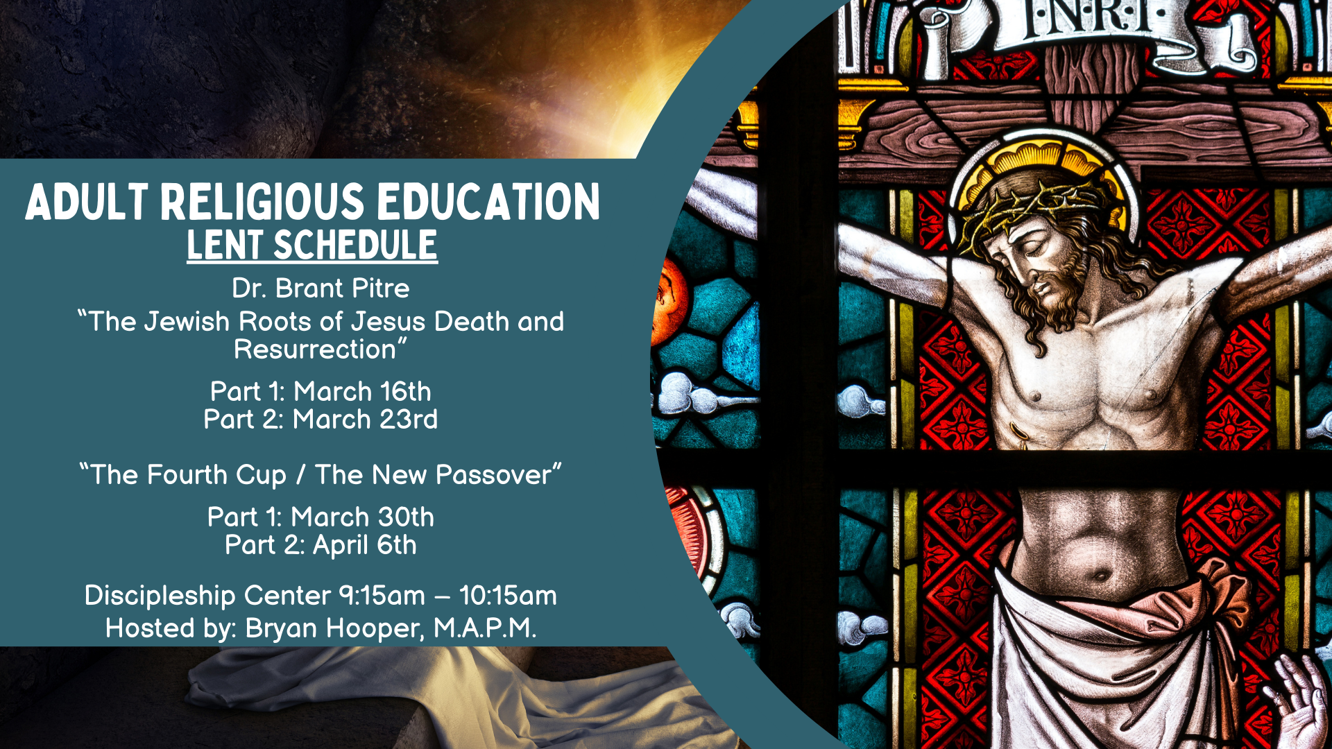 Our Sunday Morning Adult Education group meets each week in Discipleship Center between Masses from 9:15 am to 10:15 am during the school year.